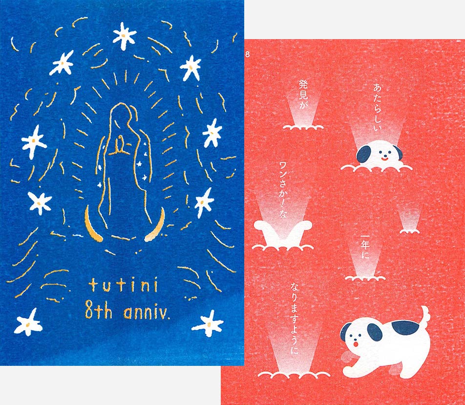CMYK(シアン・マゼンタ・イエロー・墨)の掛け合わせで色を表現するのではなく、直接その色のインクで印刷するため、発色がクリアです。紙にインクを直接のせたようなマットな質感は、懐かしくて温かみがあります。