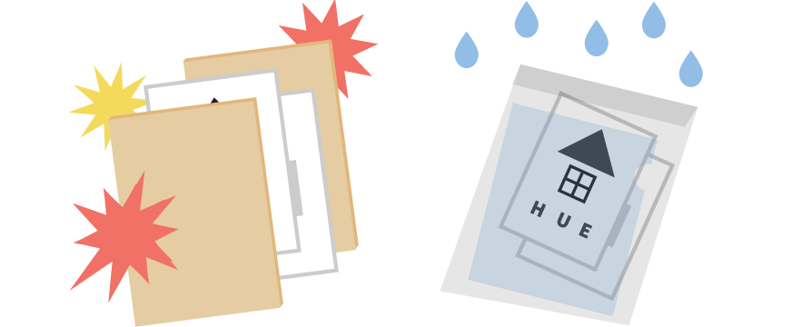 送る際に途中で折れ曲がったり、雨で濡れないように段ボールで挟んだりして、しっかりと梱包してください。