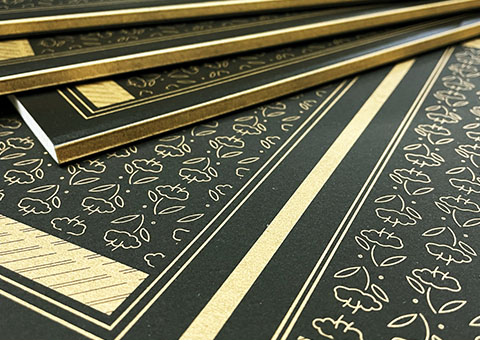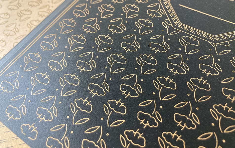 UV厚盛り印刷と似ていますが、隆起部分には独特の凹凸が生じます。PP加工と異なり表紙全面を覆わないため、インク落ちを防ぎながら、印刷がない部分は紙の質感を楽しむことができます。