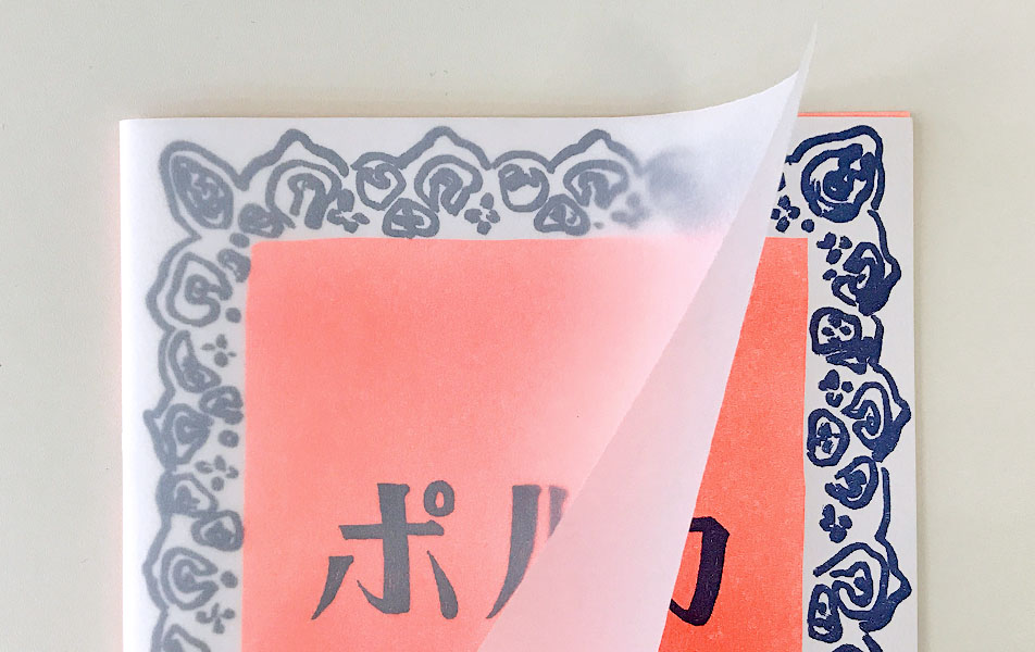 トレーシングペーパーが表紙の上に綴じられた仕上がりです。