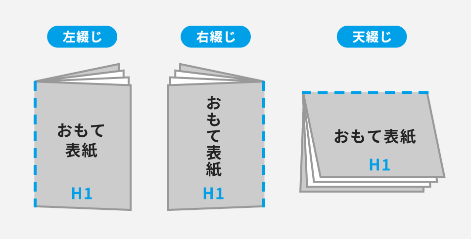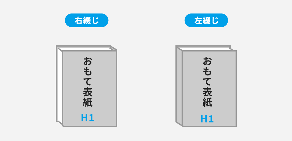 左綴じ(ノート・洋書など主に横書きの本)か右綴じ(小説・漫画など主に縦書きの本)かにより、表紙の位置や向き、本文のページ順が異なります。お間違えのないようご注意ください。