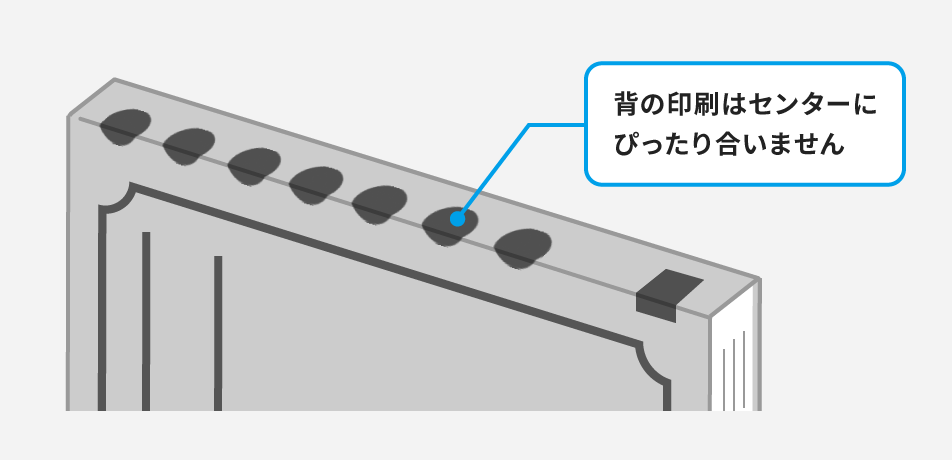 印刷時や断裁時にズレが生じるため、背部分に配置された文字などはセンターから外れることがあります。5mm以下の背幅に文字を入れることはおすすめしておりません。背部分に文字やイラストを配置される場合は、ズレをご考慮の上デザインをお願いします。