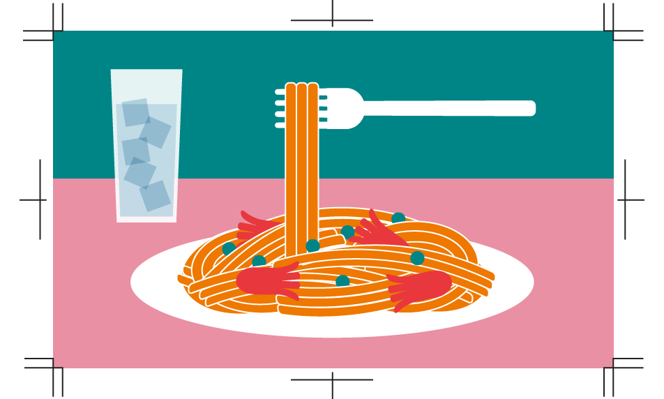 版ズレや断裁ズレにより、仕上がり線ぎりぎりに配置されている文字やイラストは、わずかにズレが生じただけで切れてしまう可能性があります。