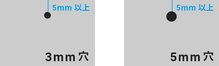 - 切れては困る文字・デザインは、穴あけ部分から3mm以上離してください。